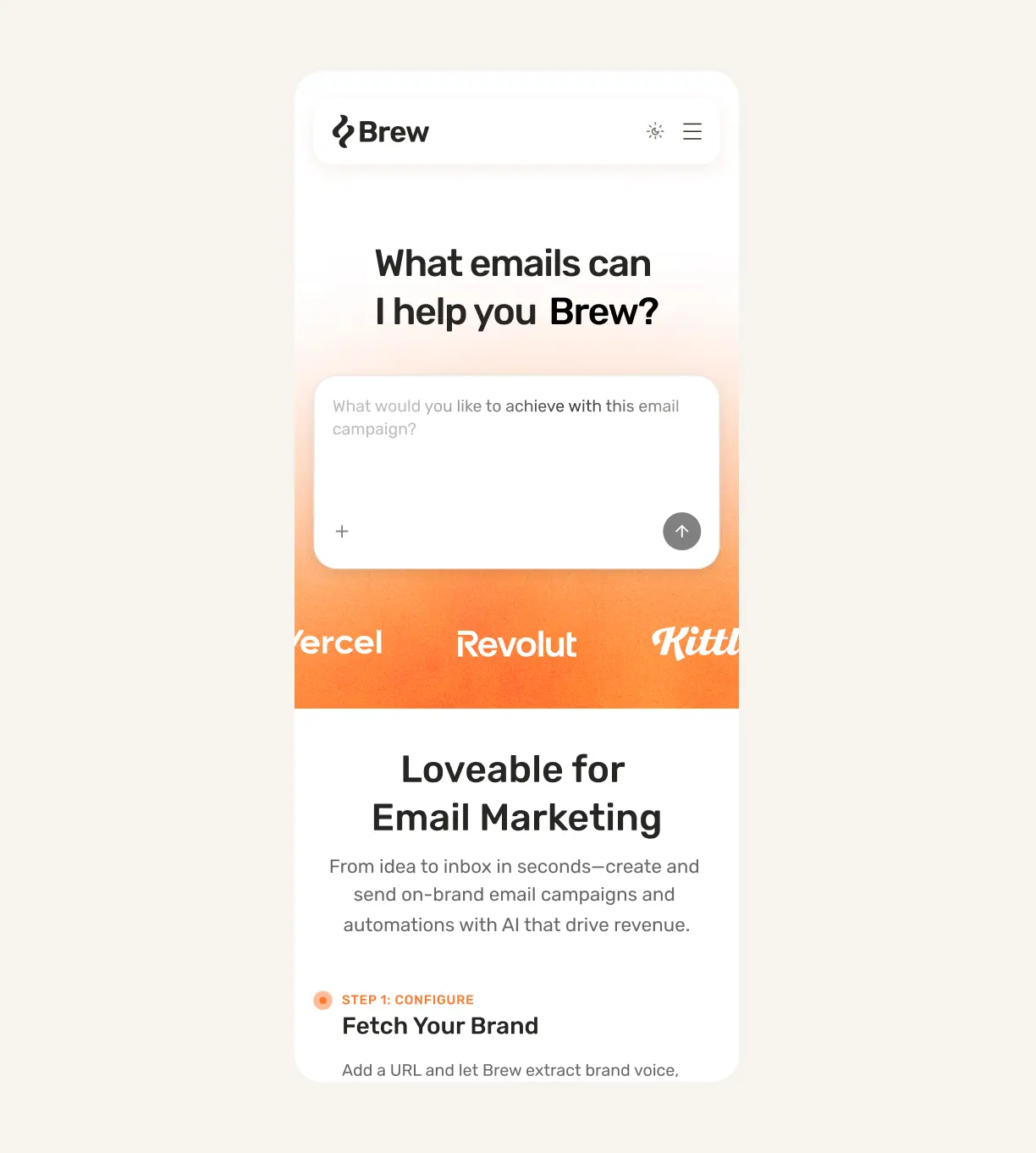 Brew is an AI-powered platform that analyzes a brand’s website to automatically generate personalized email campaigns and marketing content.